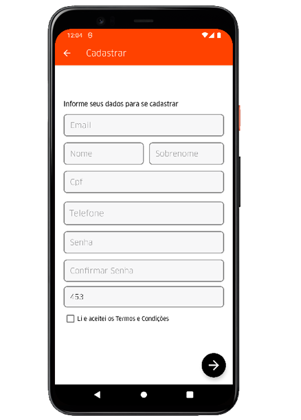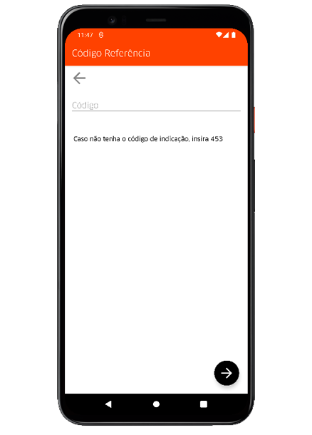 Após digitar o código de indicação usuário ser direcionado para tela de cadastro onde informa seus dados.