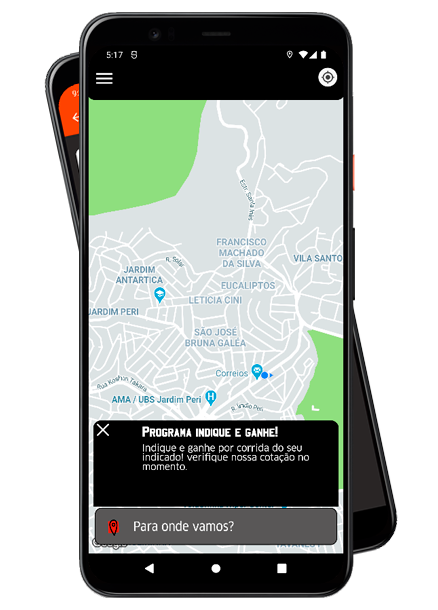 Após registrar-se uma tela de localização e aberta, onde você localiza o motorista mais próximo e solicita uma corrida.